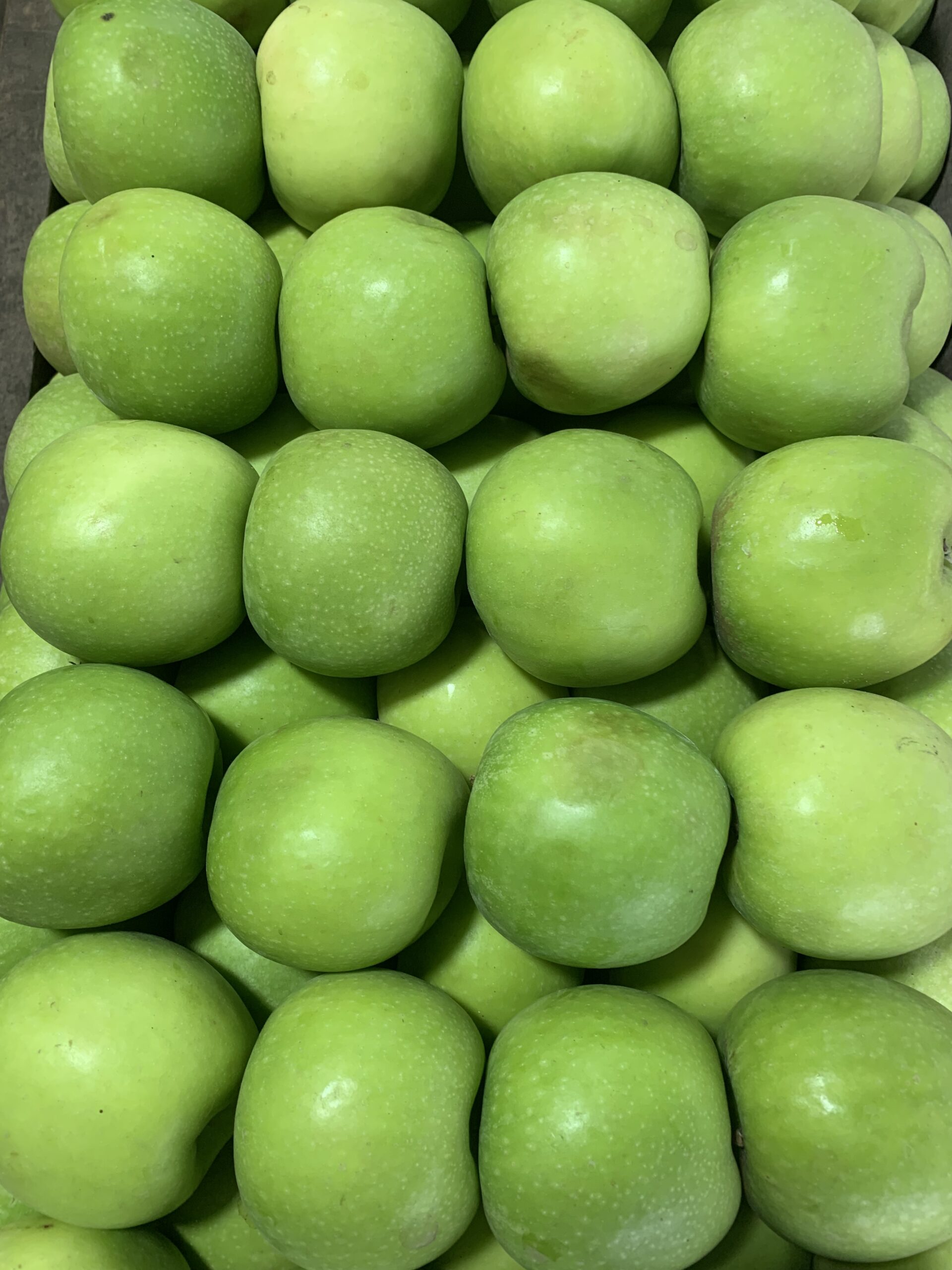 The Green New Zealand apple, commonly known as the Granny Smith apple, is renowned for its vibrant green skin and crisp, juicy texture. This apple variety is medium to large in size, with a firm, dense flesh that offers a refreshing tartness balanced by a subtle sweetness. The skin is smooth and glossy, often with faint white speckles.